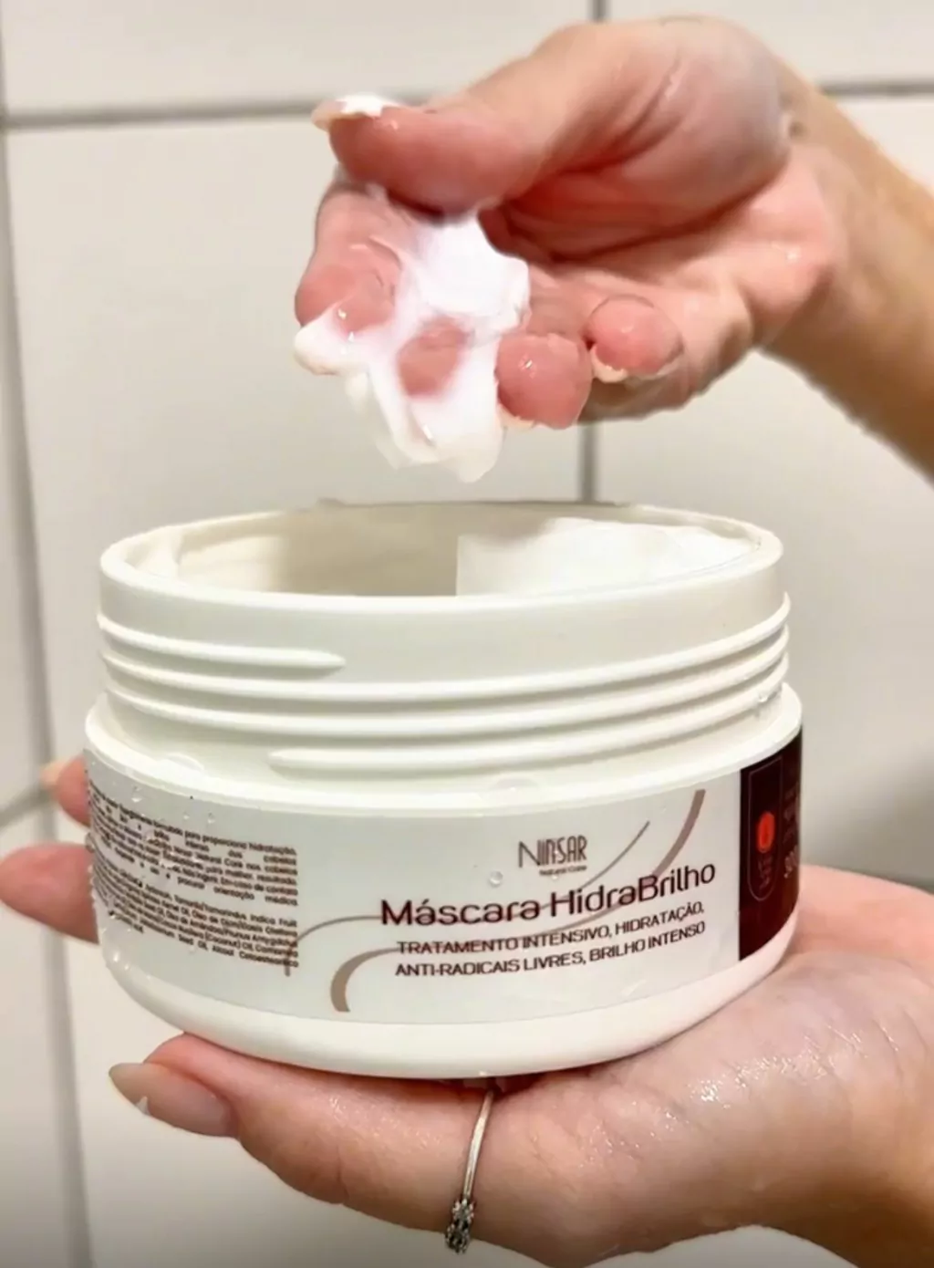 A Máscara HidraBrilho Ninsar é um tratamento intensivo para todos os tipos de cabelos. Especialmente formulada para proporciona hidratação, resistência, ação antioxidante, melhora da textura dos fios e brilho intenso dos cabelos.